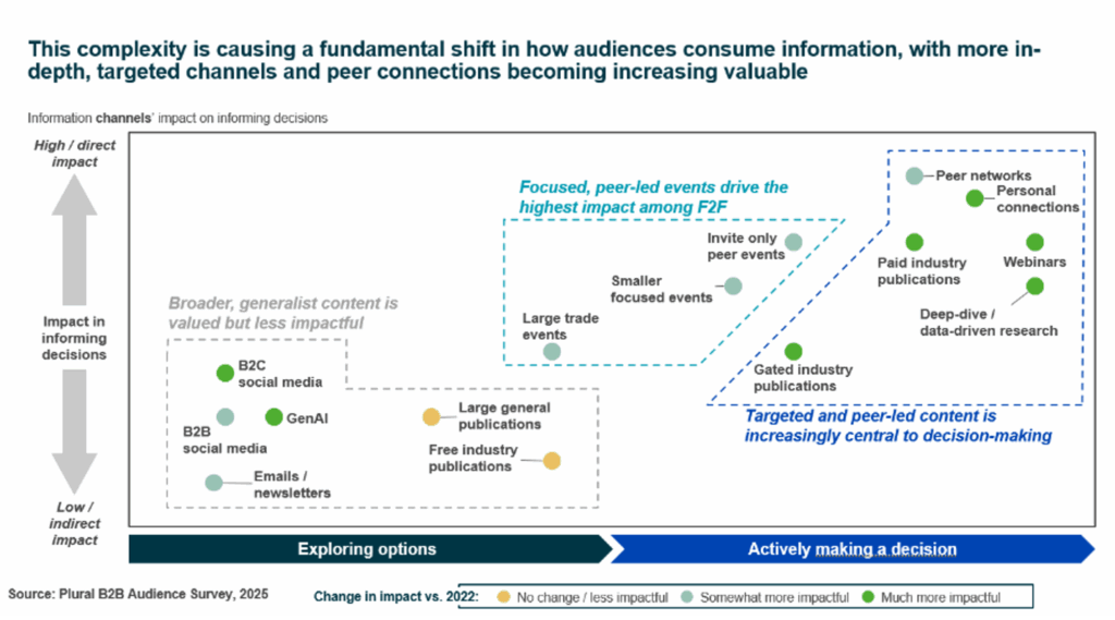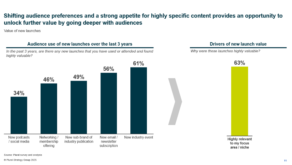 The value in B2B media is not diminishing, it is shifting: audiences increasingly lean on media brands for original content and research, expert opinion and advisory and, perhaps most important, to gather and share the community’s collective knowledge and real-life experiences. The results of Plural’s annual B2B audience survey really brought this to life:
